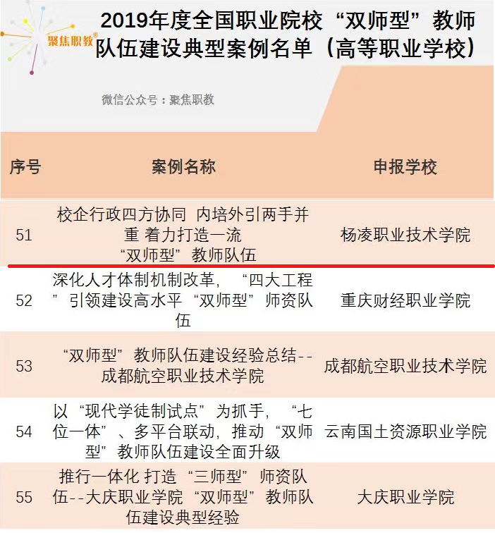 近日教育部职业技术教育中心研究所公布了2019年度全国职业院校“双师型”教师队伍建设典型案例公示名单,我院“校企行政四方协同,内培外引两手并重,着力打造一流‘双师型’教师队伍”案例入选全国职业院校“双师型”教师队伍建设典型案例;我院水利工程分院赵旭升老师“发挥实践特长,勇挑教学重担,展现新时代‘双师’素质教师新风采”案例入选全国职业院校“双师型”教师专业发展典型案例。