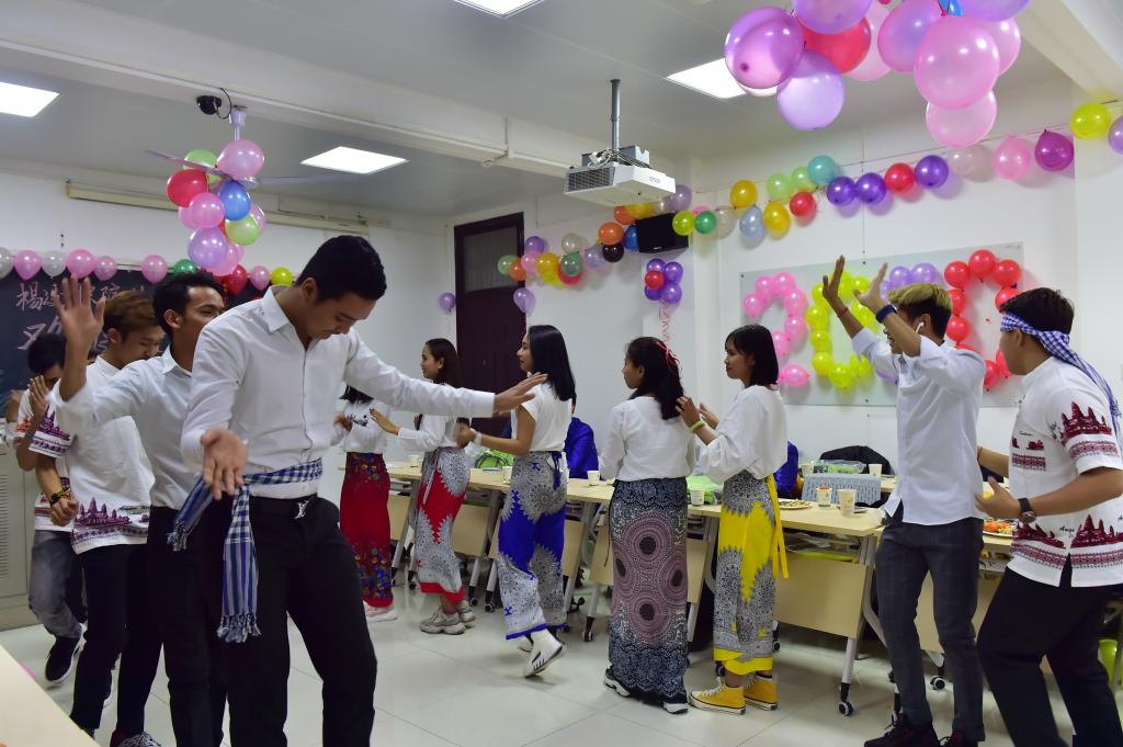 12月31日晚,我院在西校区举行了外国留学生欢度元旦联欢晚会。院长王周锁以及国际学院负责人、全体教师观看了晚会,与留学生们一起跨年。