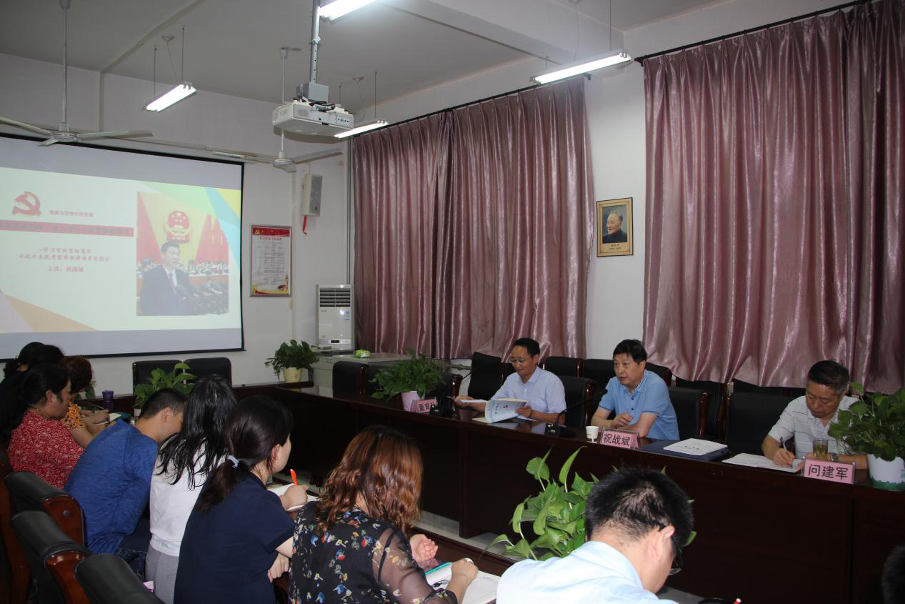 7月30日,副院长祝战斌以“贯彻落实习近平总书记来陕重要讲话精神,奋力谱写分院发展新篇章”为题,为旅游与管理分院全体教职工讲专题党课。