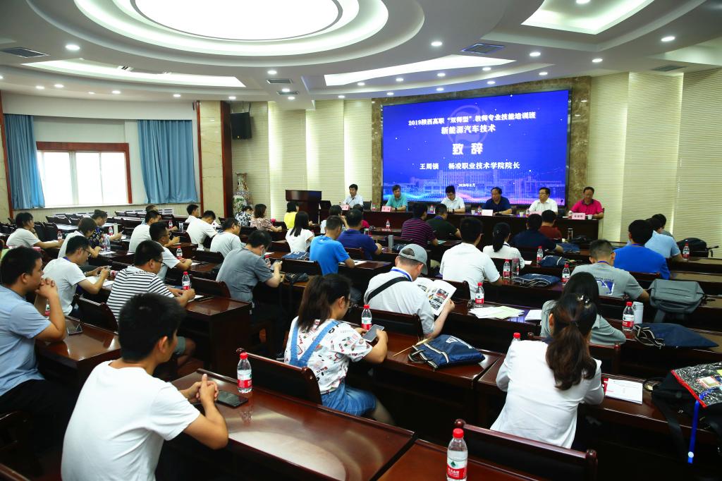 8月8日上午,由省教育厅主办、我院承办的“2019陕西高职‘双师型’教师专业技能培训班(新能源汽车技术)”开班仪式在我院南校区水韵楼二楼报告厅举行。省教育厅职成处副处长周杰;我院院长王周锁,副院长张迪,机电工程分院院长龙建明;陕西天益教育科技有限公司总经理孙书阳,以及来自全省19家高职院校的41名参训教师参加了开班仪式。开班仪式由我院继续教育与培训学院负责人黄璞主持。