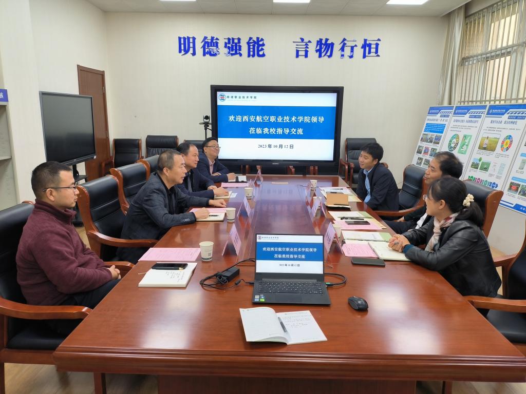 10月12日下午,西安航空职业技术学院副校长郭红星、现代职业研究院及国有资产处相关负责人一行3人来我校调研交流。副校长胡俊鹏、资产设备处及发展规划处负责人陪同调研。