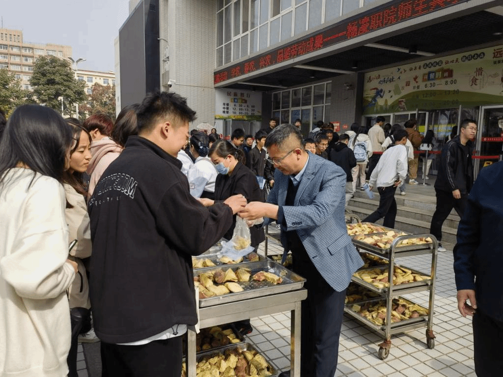 1027日中午,学校在三校区食堂门口开展免费品尝红薯活动。活动时间为27日至29日,共三天,赠完为止