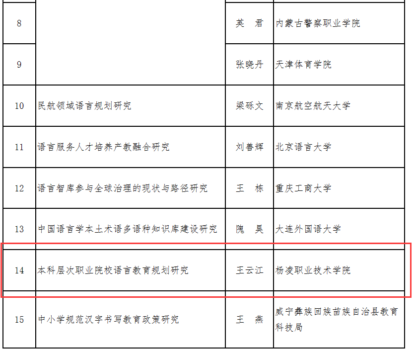 近日,国家语委科研规划领导小组办公室公布2023年度科研项目名单。我校王云江教授主持申报的“本科层次职业院校语言教育规划研究”项目获批立项。