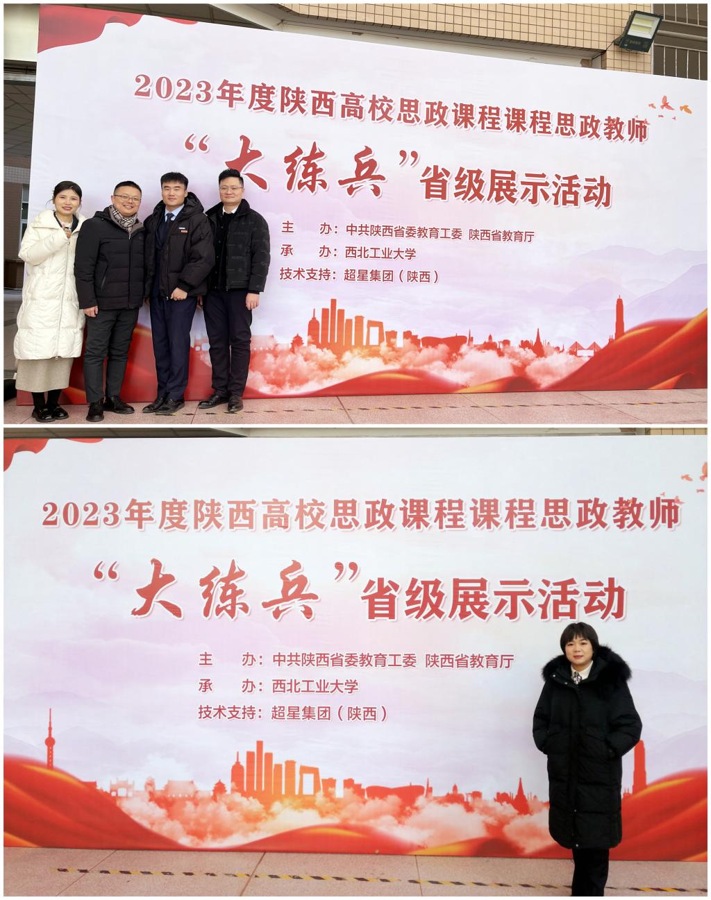 12月22日,2023年度陕西高校思政课程课程思政教师“大练兵”省级展示活动结果公布。我校马克思主义学院教师颜永杰获思政课程“教学标兵”、彭丽丽获思政课程“教学能手”;文理学院教师苏娟丽获课程思政“教学能手”;师生团队叶琛(马克思主义学院教师)、李阁亮(旅游与管理学院学生)获思政课“教学团队能手”。
