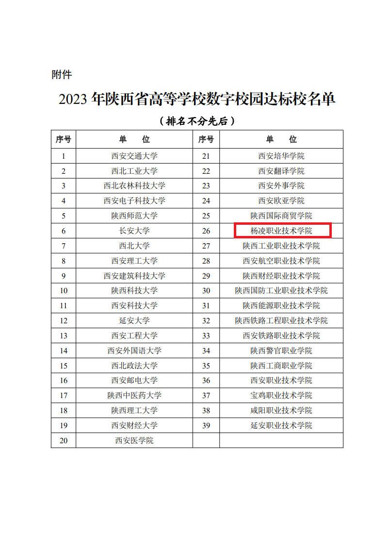 按照陕西省高等学校“数字校园普及行动”有关工作安排,经学校申报、形式审查、申报公示、专家评审、省教育厅研究审议,学校获评2023年陕西省高等学校数字校园达标校。