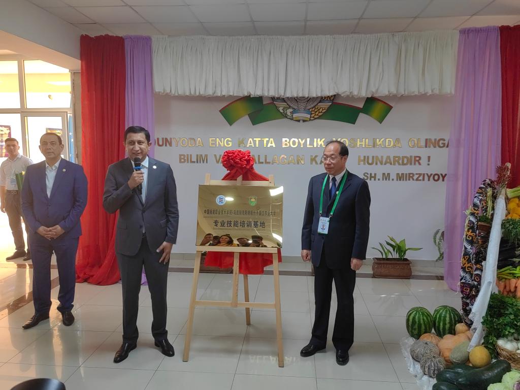 在乌兹别克斯坦古利斯坦国立大学,仲伟周实地参观了该校农业园和生物工程、物理、艺术等学院的教学设施与条件,并与该校就双方开展国际合作的内容和方式进行了深入交流。双方在专业技术技能培训、师生交流、基地建设等方面达成合作意向,签订了《专业技术技能培训项目合作协议书》,仲伟周向古利斯坦国立大学授予“杨凌职业技术学院-古利斯坦国立大学专业技能培训基地”牌子。