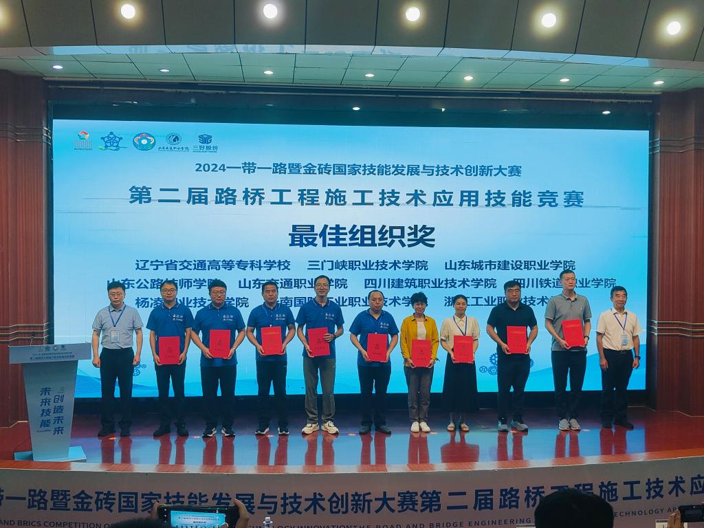 8月20至22日,2024一带一路暨金砖国家技能发展与技术创新大赛高职组“路桥工程施工技术应用”赛项在山东交通职业学院举行,共有来自全国178支高职院校代表队参加。我校交通与测绘工程学院道路与桥梁工程技术专业郭锋、苟伟航两名学生获高职组团体赛一等奖,严超群、卫少阳两名教师获优秀指导教师,学校获最佳组织奖。