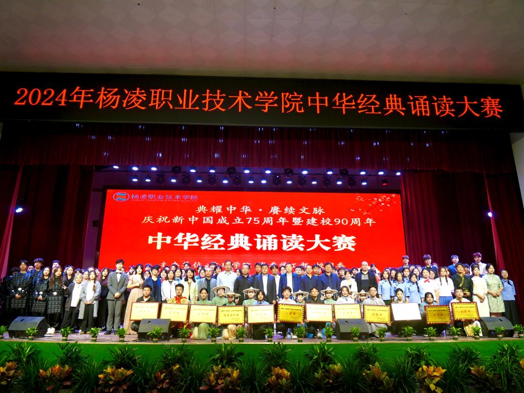 比赛主题为“典耀中华 赓续文脉”,选派教育部、国家语委组织的中华经典诵读大赛获奖作品《凤凰涅槃》进行展演,旨在引领全校师生重温中华经典,厚植爱党爱国情怀。随后,各二级学院选送的11支代表队以独诵、对诵、齐诵等形式展开了近两小时的精彩角逐,最终水利工程学院代表队获一等奖,生物工程学院、药物与化工学院代表队获二等奖,信息工程学院、建筑工程学院、生态环境工程学院、旅游与管理学院获三等奖,经济与贸易学院、交通与测绘工程学院、机电工程学院、动物工程学院获优秀奖;水利工程学院、旅游与管理学院荣获“优秀组织奖”,赵梦歌和何昕楠两位老师凭借出色的指导能力荣获“优秀指导教师奖”。