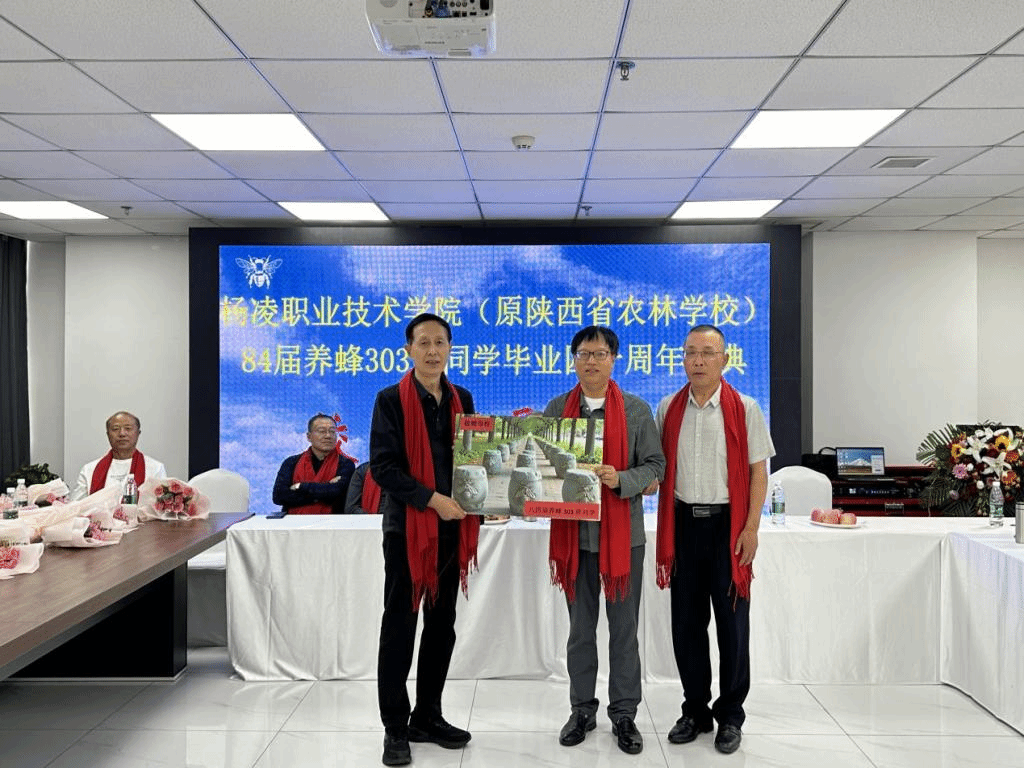 会上,84级养蜂专业303班校友向学校捐赠了16座石凳。大家欢聚一堂,回首往昔,感念师恩,畅谈师生情谊。王周锁重温了学校90年来的历史沿革和发展历程,希望在学校职业本科建设、双高建设和新校区建设的关键时期,校友们共勉共进,助力学校发展。与会校友回忆在校求学的美好时光,表达了对母校栽培的感恩之情,并对学院建设发展纷纷提出宝贵意见,祝愿母校事业蒸蒸日上。