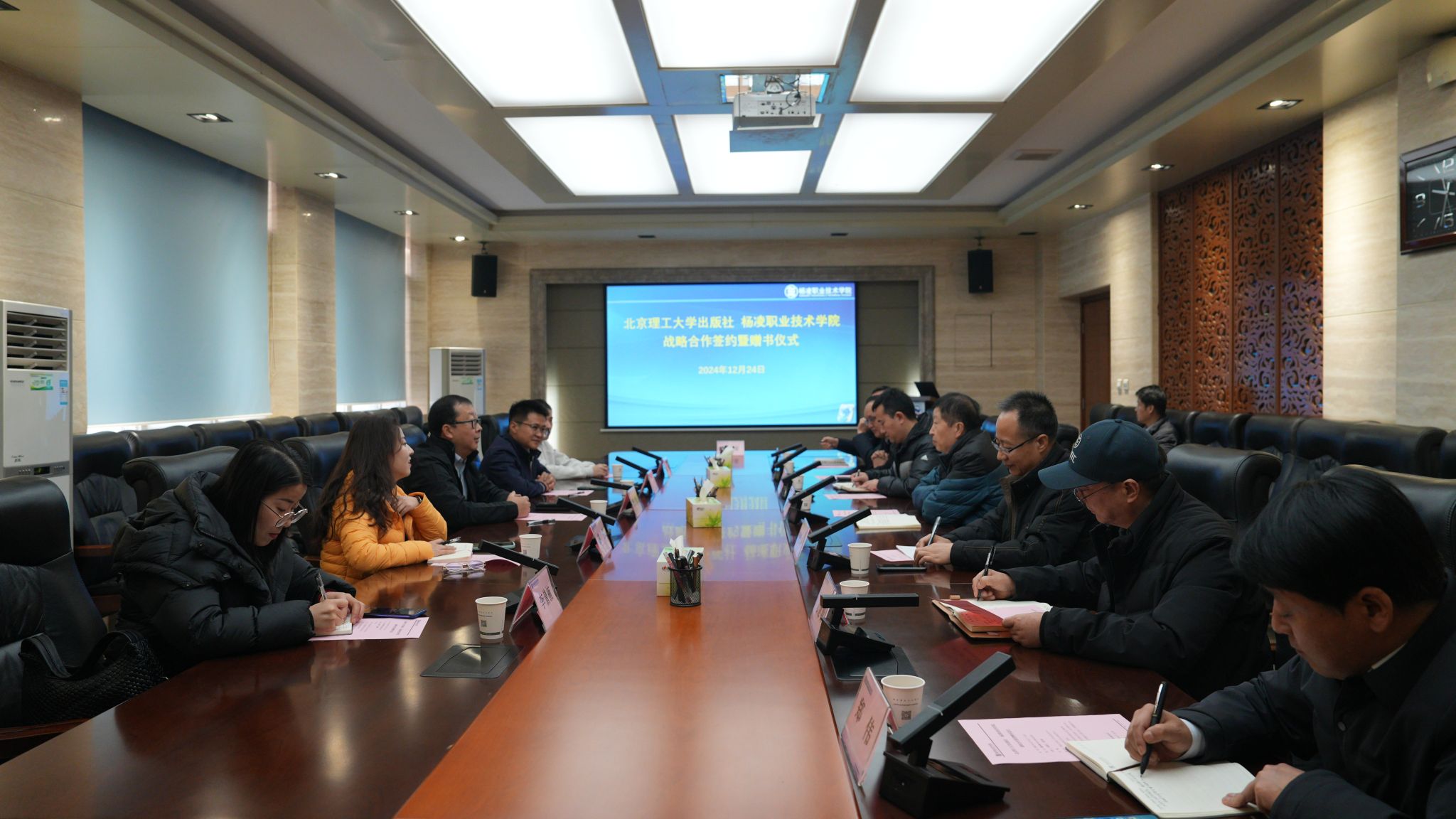 12月24日,学校与北京理工大学出版社签署了战略合作协议并举行了赠书仪式。北京理工大学出版社副社长张文峰、机车分社社长赵岩、陕西分社社长高锦、陕西区域经理曹浩铭、策划编辑李倩楠,我校副校长祝战斌,教务处和各二级学院(部)负责人等出席仪式。