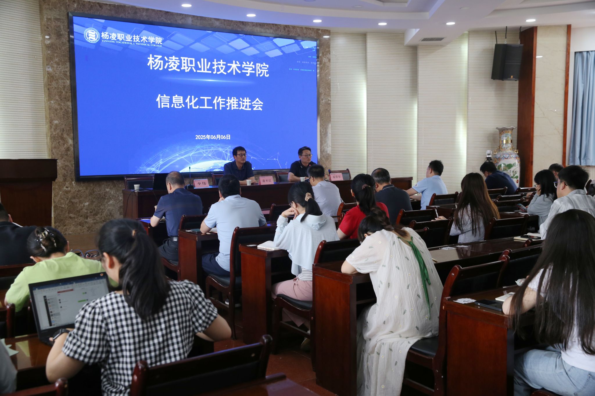 6月6日上午,学校召开信息化工作推进会暨人工智能应用培训会。副校长蒋平江出席会议并讲话。信息化建设与管理处负责人,各二级学院、机关处室信息化工作负责人及管理员参会。
