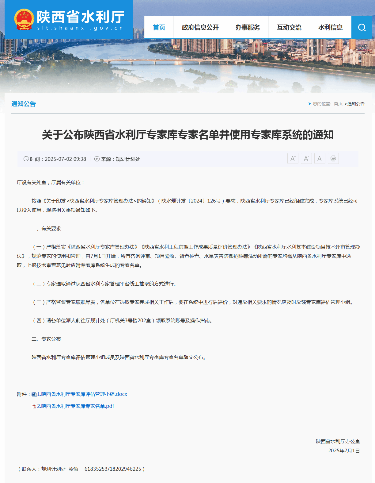 此次评选按照《陕西省水利厅专家库管理办法》相关要求,经过严格审核和筛选后确定,入选教师专业覆盖水土保持、水力发电、农田水利、水工结构、水资源、河道治理、水利信息化、质量检测等。根据规定,入选专家将在咨询评审、项目验收、督查检查、水旱灾害防御抢险等活动中发挥重要作用,为陕西省水利事业的发展提供专业支持和决策参考。