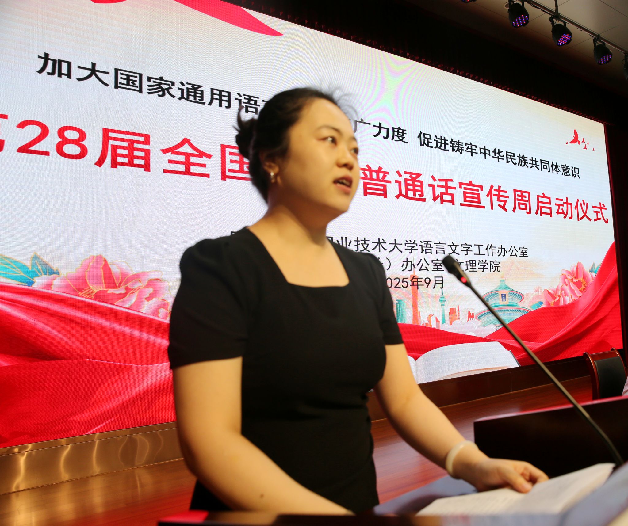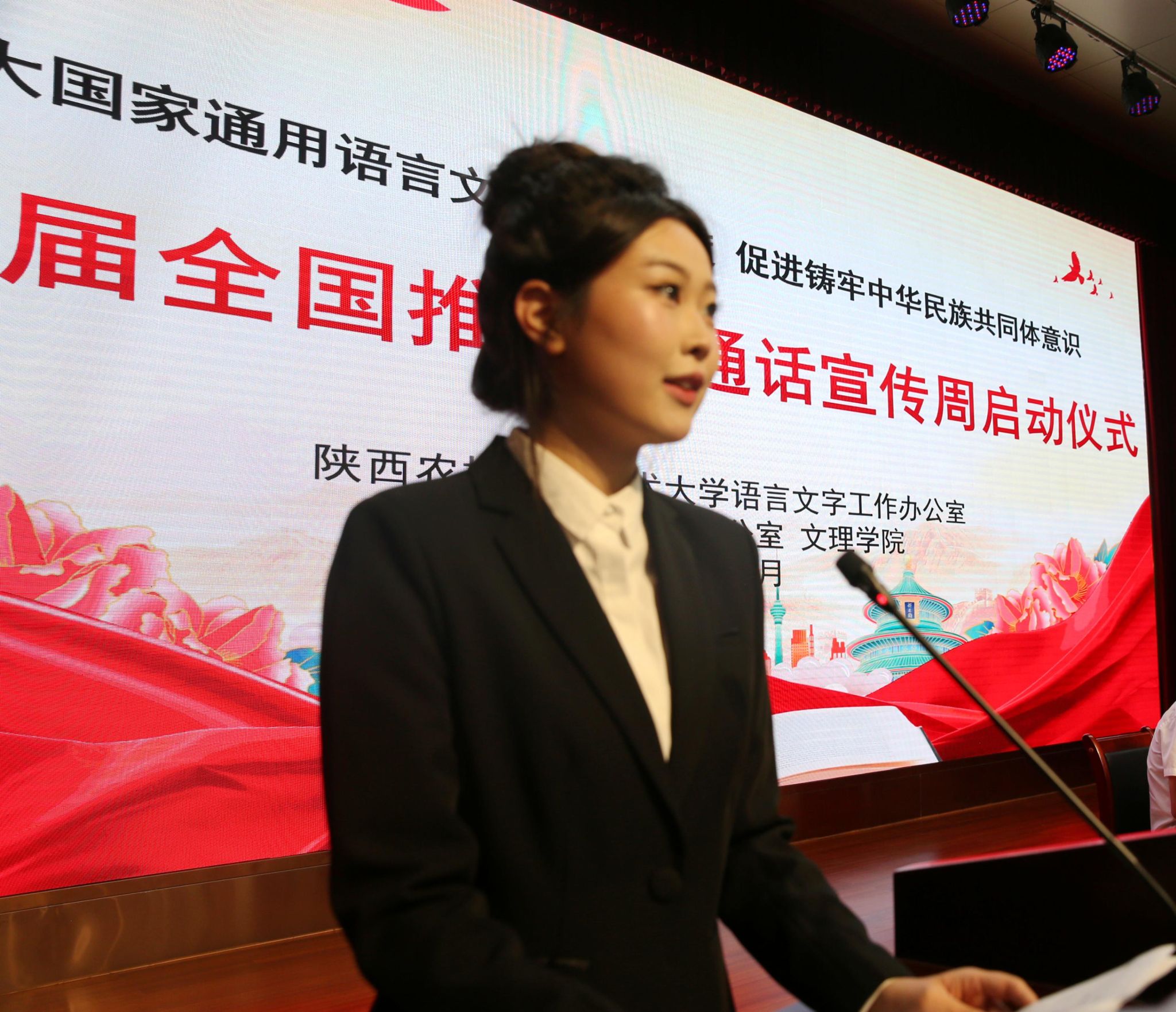 会上宣读了《365官网开展全国第28届推广普通话宣传周活动方案》。教师代表文理学院惠子薇、学生代表动物工程学院田鲁遥作表态发言,倡导大家以实际行动,营造“书同文、语同音、心相近”的校园文化氛围。