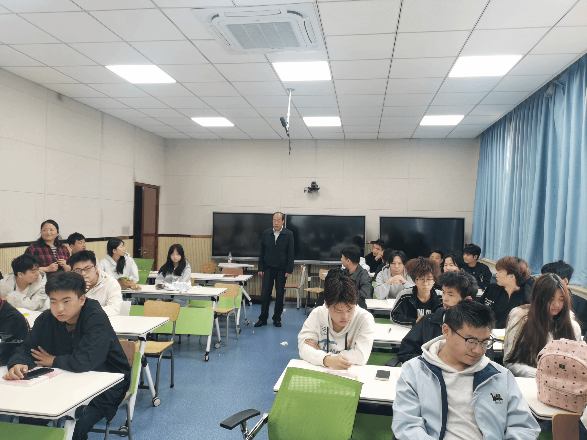 9月26日上午八点,仲伟周深入交通与测绘工程学院城市轨道24036班,听取了马克思主义学院刘晓瑞副教授讲授的《毛泽东思想和中国特色社会主义理论体系概论》课程,对课程教学和课堂情况进行了详细了解和检查。