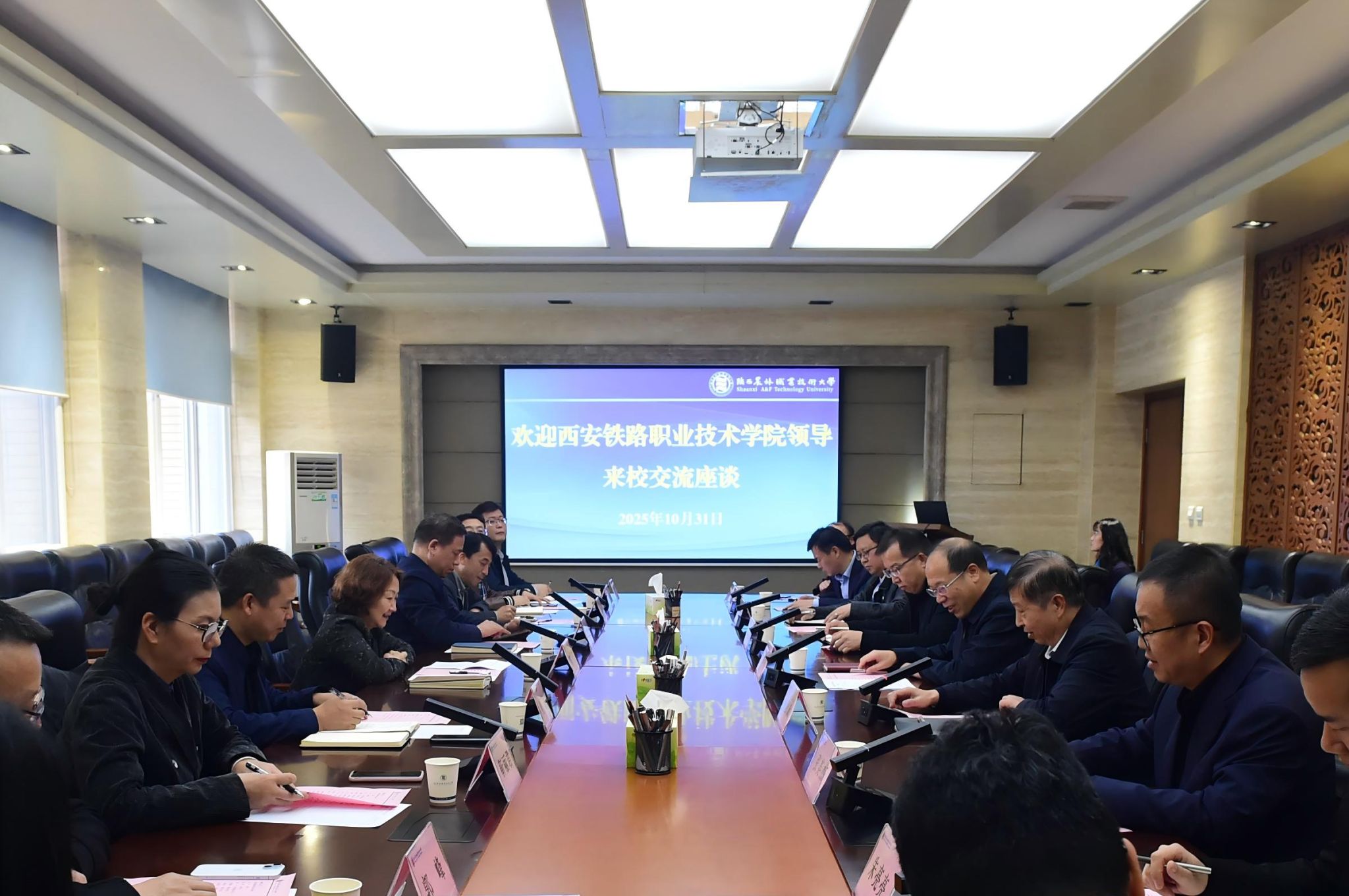 10月31日下午,西安铁路职业技术学院院长陈红、副院长熊奇带队来校考察交流。校长仲伟周、副校长祝战斌参加座谈并陪同考察。