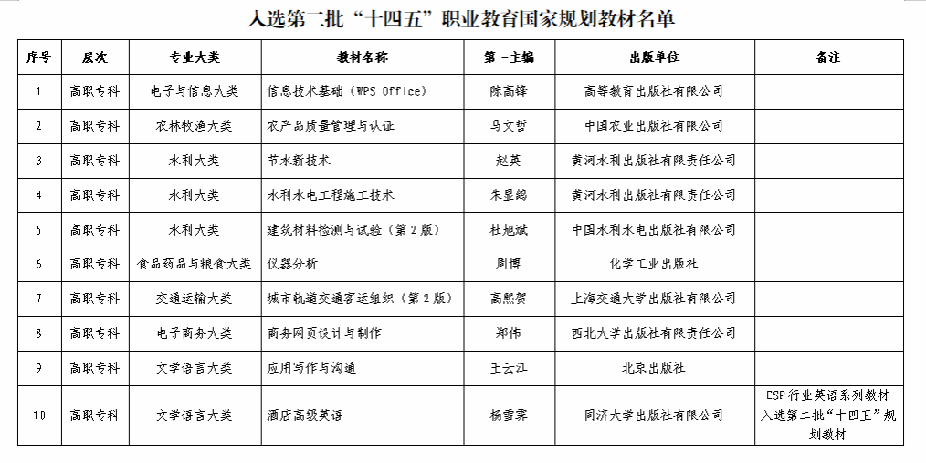 近日,教育部公布了第二批“十四五”职业教育国家规划教材书目名单,我校《农产品质量管理与认证》等10本教材成功入选。