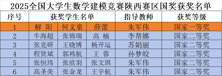 近日,2025年全国大学生数学建模竞赛成绩揭晓,我校学子团结协作、勇于创新,凭借扎实的数学功底、敏锐的创新思维和出色的实践能力,在众多参赛队伍中脱颖而出,共斩获国家一等奖1项、二等奖5项,省级一等奖、二等奖20项,实现了该项赛事中国家级最高奖项数量的历史性突破。学校获陕西赛区表扬单位,张涛教师获陕西赛区优秀组织工作者,获奖等次及获奖率均排在陕西高职院校前列,充分彰显了学校在创新型人才培养和学科竞赛方面的雄厚实力。