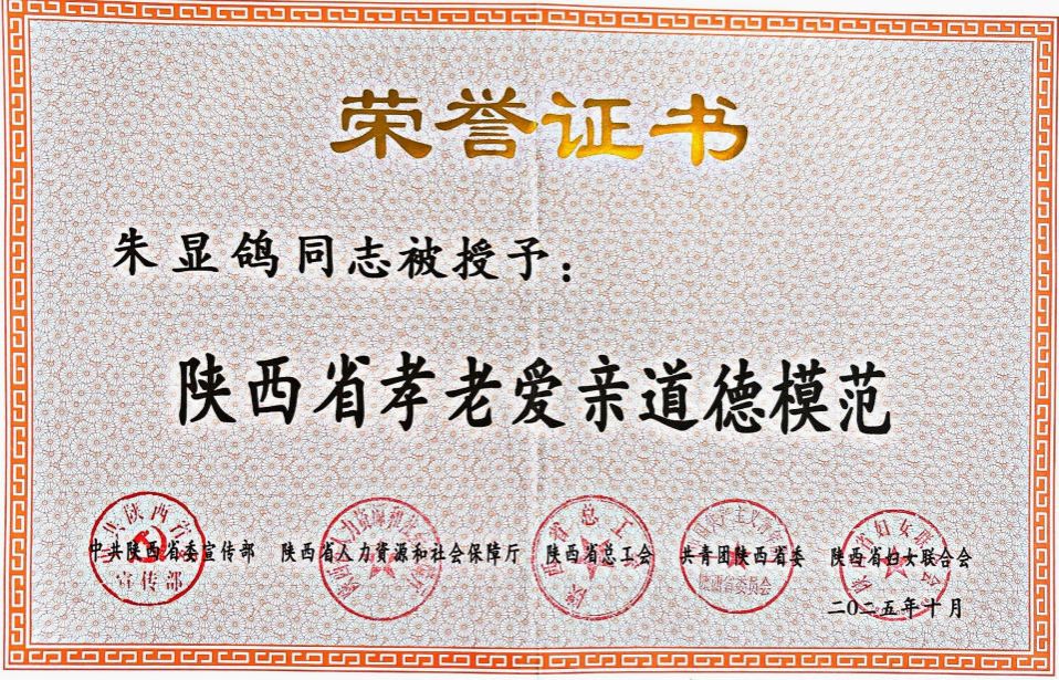 崇德向善德耀三秦11月28日,陕西省第八届道德模范颁奖仪式在西安举行,我校教师朱显鸽荣获陕西省第八届孝老爱亲“道德模范”荣誉称号