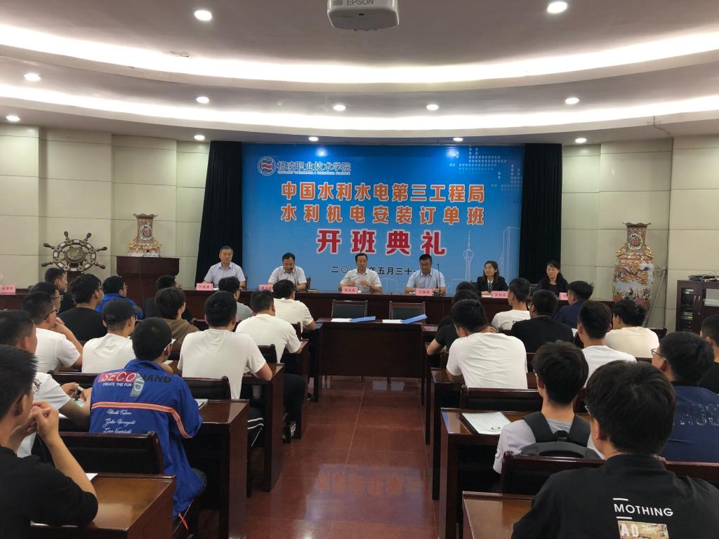 据了解,我院与中国水利水电第三工程局合作已久,中国水利水电第三工程局水利机电安装订单班的开设体现了教育与产业、学校与企业、专业与职业、教学过程与生产过程的有效对接,是校企合作结出的又一硕果。本次开班的中水三局水利安装订单班由32名学生组成,是在水利分院、机电分院2017级相关专业学生中选拔产生的。订单班将采取单独上课,在中水三局安装分局集中实习开展教学,学生毕业后统一在中水三局就业。