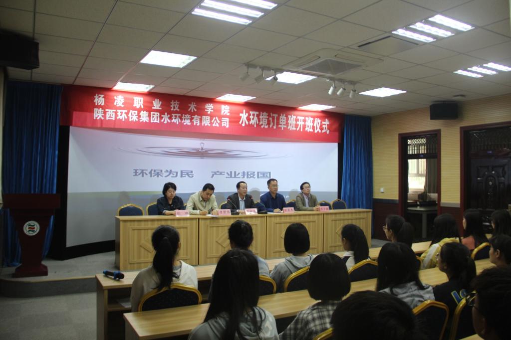 5月14日下午,我院与陕西环保集团水环境有限公司合作的“水环境订单班”开班仪式举行。学院副院长张永良、陕西环保集团水环境公司副总经理唐碧伟,以及生态与环境工程分院相关负责人、环保教研室教师、“水环境订单班”72名学生参加了开班仪式。