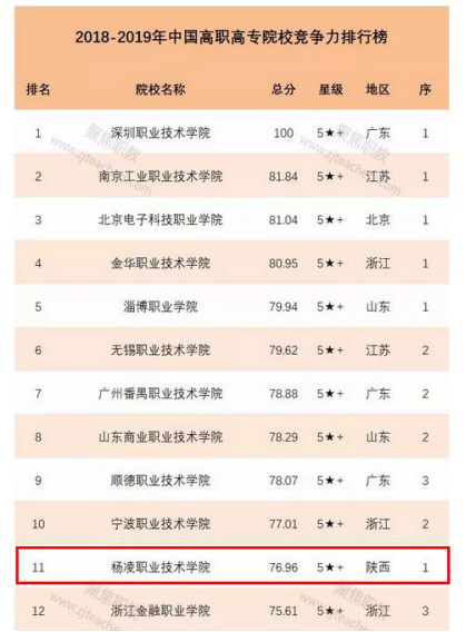 3月23日上午,首届全国高职高专“优质校”建设与评价论坛在杭州召开。会议发布了《中国大学及学科专业评价报告(2018)》,该评价报告全面、系统、公正、客观地评价了中国大陆2621所大学的实力和水平,我院在2018年-2019年中国高职高专院校竞争力排行榜中,位列全国1386所高职高专院校第11位(陕西高职第1位)。