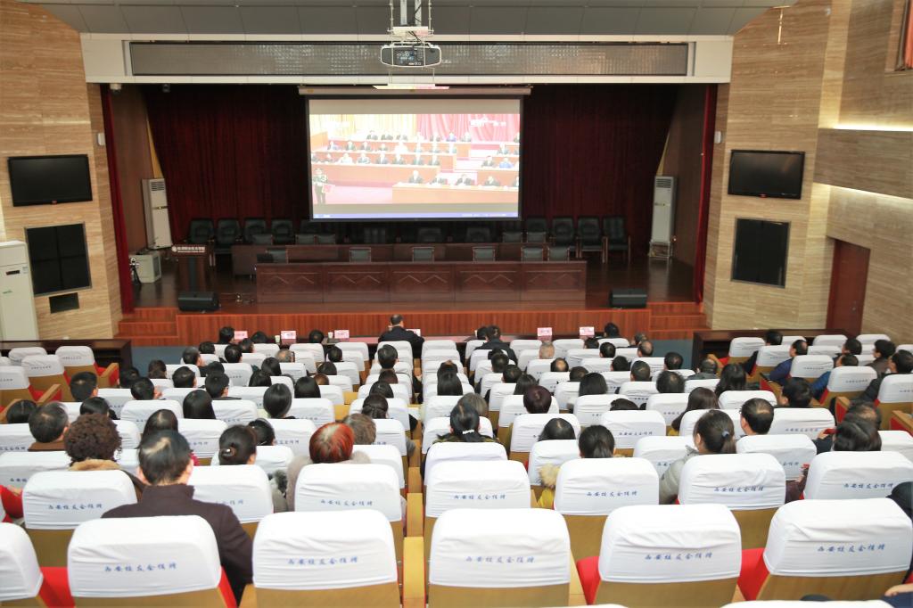 院党委理论学习中心组成员、院机关所有职工在思辩堂收看庆祝改革开放40周年大会