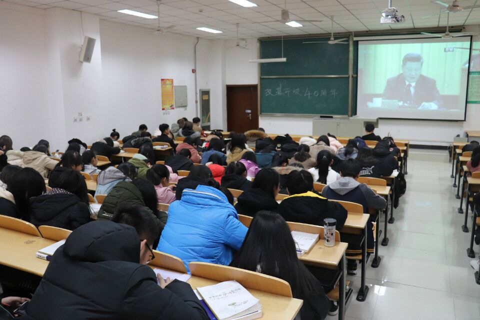 学院设置思辩堂、各分院办公室、会议室、教室、实验室、多媒体教室等30多个分会场,组织全院干部师生第一时间收看收听了庆祝改革开放40周年大会盛况。