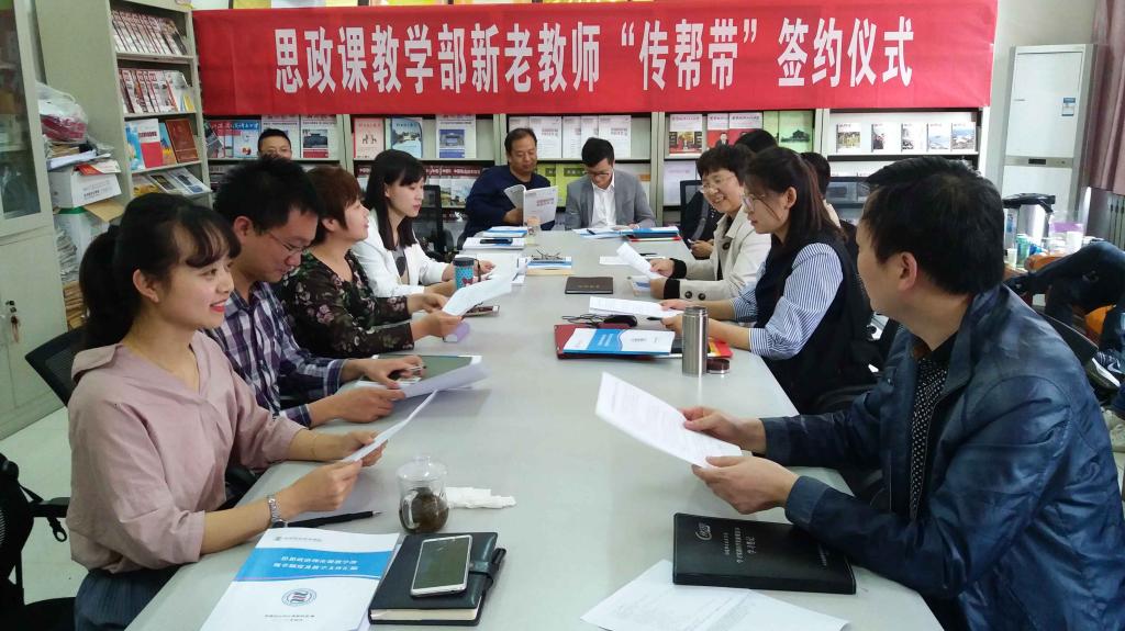 5月7日下午,思政课教学部举行了新老教师结对“传帮带”签约仪式,共有5对教师签订了导师带徒协议。