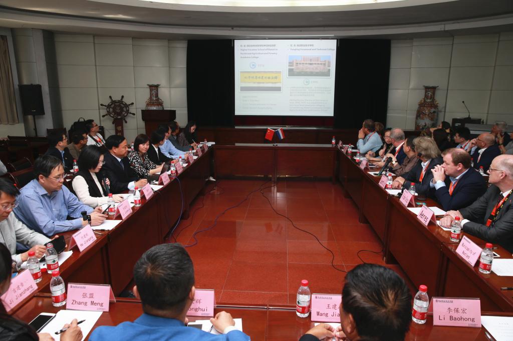 我院与荷兰朗蒂斯教育集团的教育合作,受到了荷兰政府方面的高度重视。为此,由50余人组成的荷兰王国政府园艺代表团一行在来华访问期间,专程于4月9日对我院进行了参观访问,并就园艺从业者的职业教育情况进行了座谈。参加座谈会的有荷兰40多家农产品、园艺公司和研究机构以及杨凌设施农业协会的部分企业代表,双方就园艺设施、农业技术等问题开展技术与经验交流。