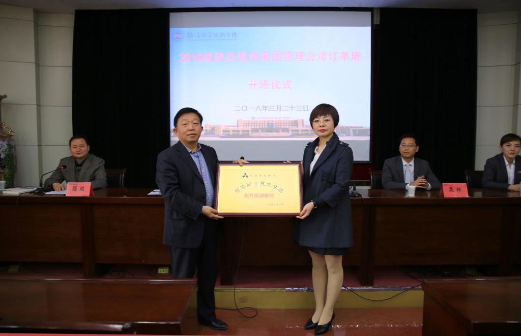 3月23日下午,建筑工程分院与陕西境商集团管理公司在水韵楼二楼报告厅举行校企合作授牌暨2016级订单班开班仪式。