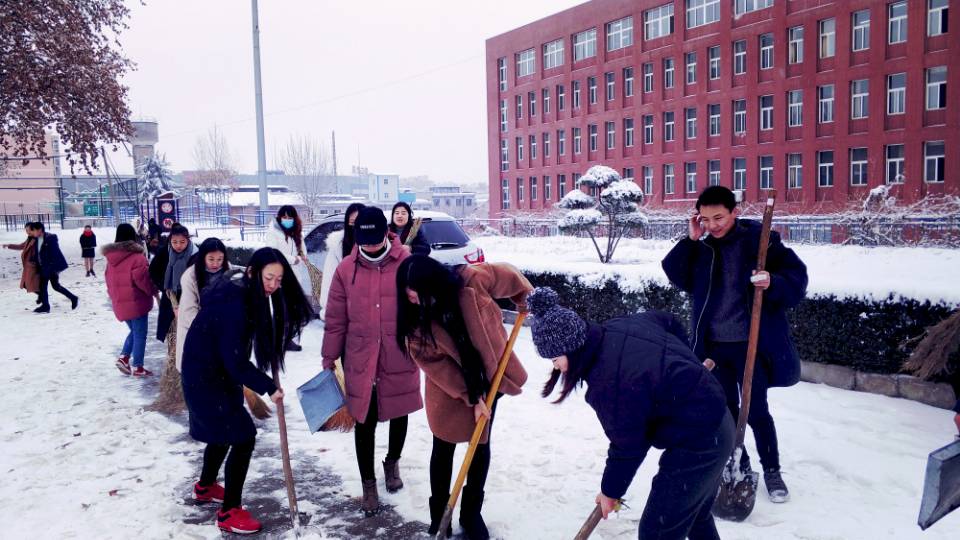 虽然天气寒冷、积雪深厚,但这一点也没有影响大家的参与热情和工作效率,大家有的拿铁锹,有的拿扫帚,有的拿簸箕,团结协作,齐心协力地开展了除雪活动。尽管每个人的脸都冻得通红,但手中的扫雪工具却不停地忙碌着,经过2个小时的劳动,大家将积雪和冰层一点点地铲起集中堆放,在寒风中清理出了干净畅通的道路,最后还堆起了一个雪人。劳动的过程中充满了欢声笑语,整个扫雪队伍也成了冬日校园里一道靓丽的风景线。