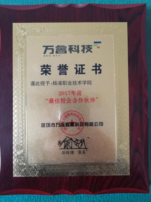 12月12日,在深圳万睿智能科技有限公司的年度评优活动中,我院信息工程分院被评为2017年度“最佳校企合作伙伴”。