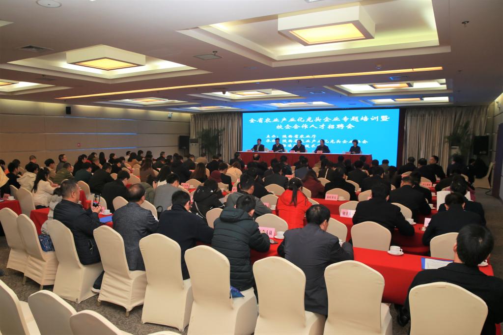 11月21日,由陕西省农业厅主办,我院和陕西省农业产业化龙头企业协会承办的全省农业产业化龙头企业专题培训暨校企合作人才招聘会在我院举行。我院院长王周锁,纪委书记刘粉莲,党委委员、教务处处长张宏辉,农业厅产业化处处长翟高友,示范区农业局局长肖永贤,以及我院招生就业处、生物工程分院负责人参加了招聘会开幕式。