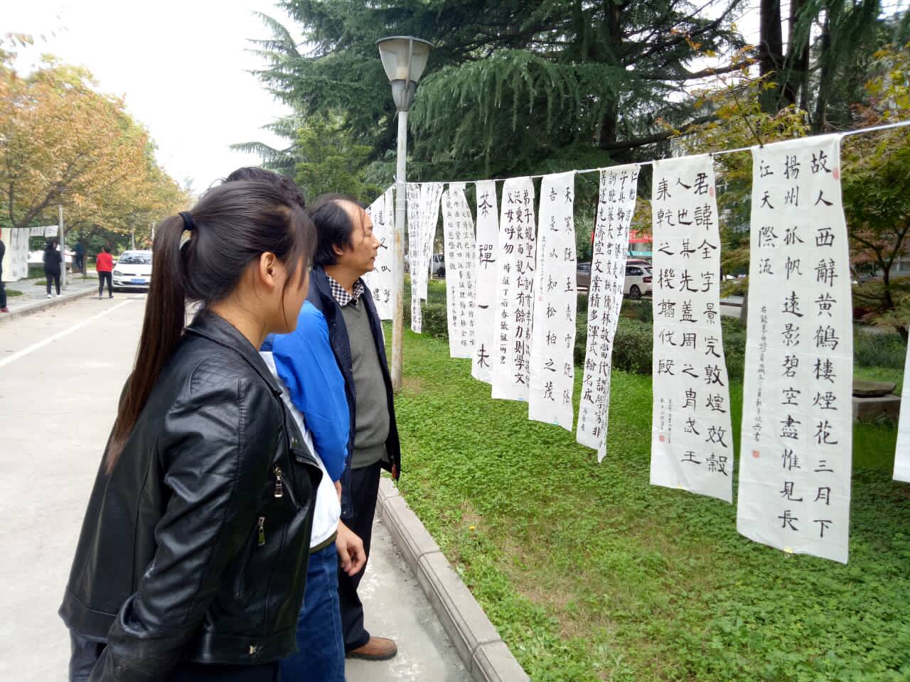 为弘扬中国民族传统文化,促进当代大学生书法绘画艺术的交流与发展, 10月20日,生物工程分院在西校区图书馆前举办“金秋十月,丹墨飘香”书画展。