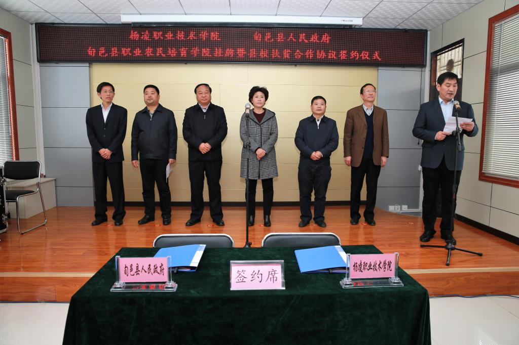 10月20日上午,我院与旬邑县人民政府共同举办的旬邑县职业农民培育学院挂牌暨县校扶贫合作签字仪式在旬邑县农民科技教育培训中心举行。省委统战部六处处长王彦平、副处长赵健,咸阳市委常委、统战部部长李晓静,咸阳市委统战部副部长、工商联书记王伟杰,旬邑县委副书记张延武、旬邑县人民政府副县长张勇,以及我院院长王周锁、党委副书记任得元等出席了相关活动。