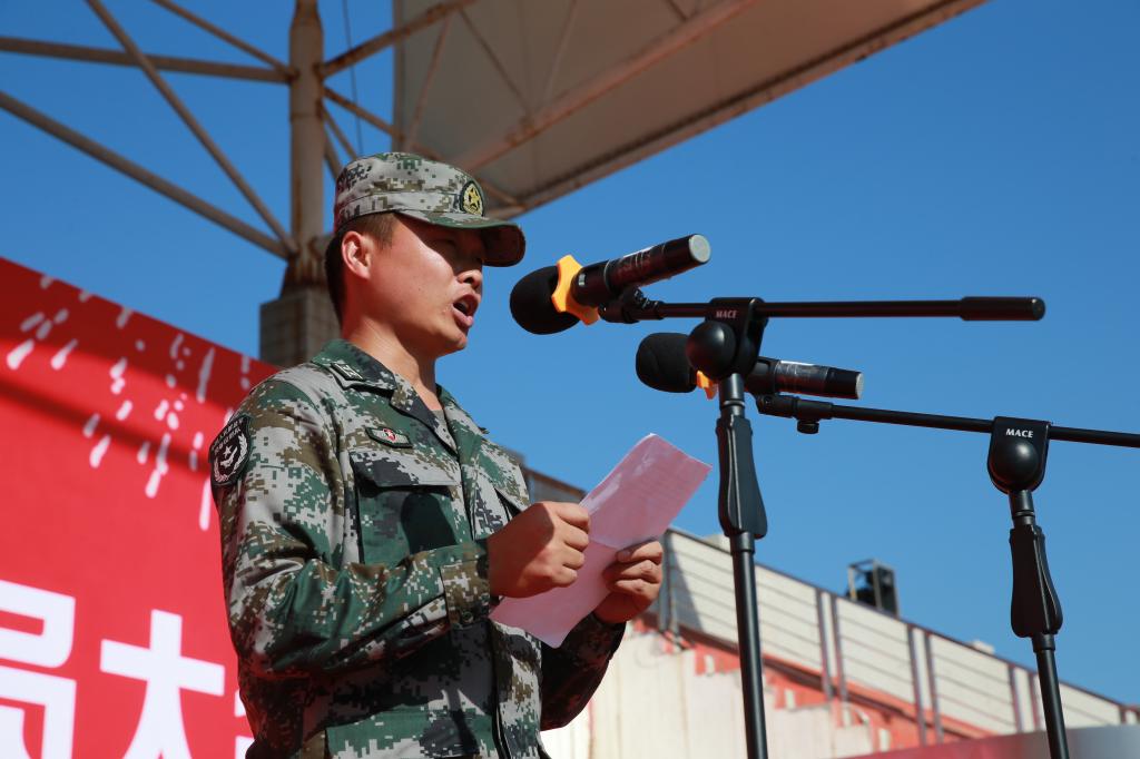 中国人民解放军68302部队、本次军训团团长马防作动员讲话
