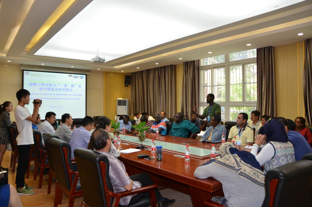 5月27日,动物工程分院召开座谈会,组织专家与在我院参加培训的埃及、蒙古、尼泊尔等8个“一带一路”发展中国家的50多名外国朋友进行座谈交流。