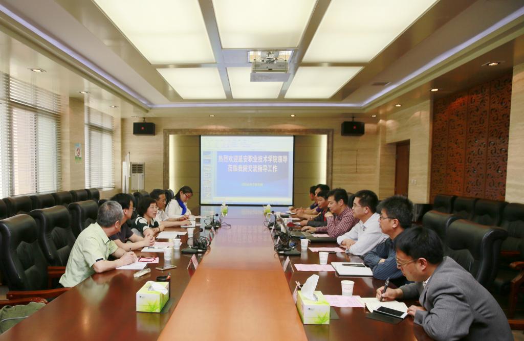 5 月 5 日 下午,延安职业技术学院副院长党云萍等一行5人来我院访问交流。我院副院长张迪在醒钟楼A208会议室热情会见了客人并举行座谈。党政办公室、教务处、学生与保卫处、科研推广处、招生就业处等相关部门负责人参加座谈会。