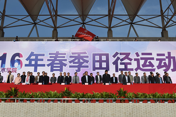 阳春四月,百花竞放。4月14日至15日,学院2016年春季田径运动会在南校区体育场隆重举行。共有来自水利工程分院等13个代表队的530名运动员参加32个赛项的角逐。学院领导,运动会组委会成员及各分院(部)、处室负责人出席了大会开、闭幕式。