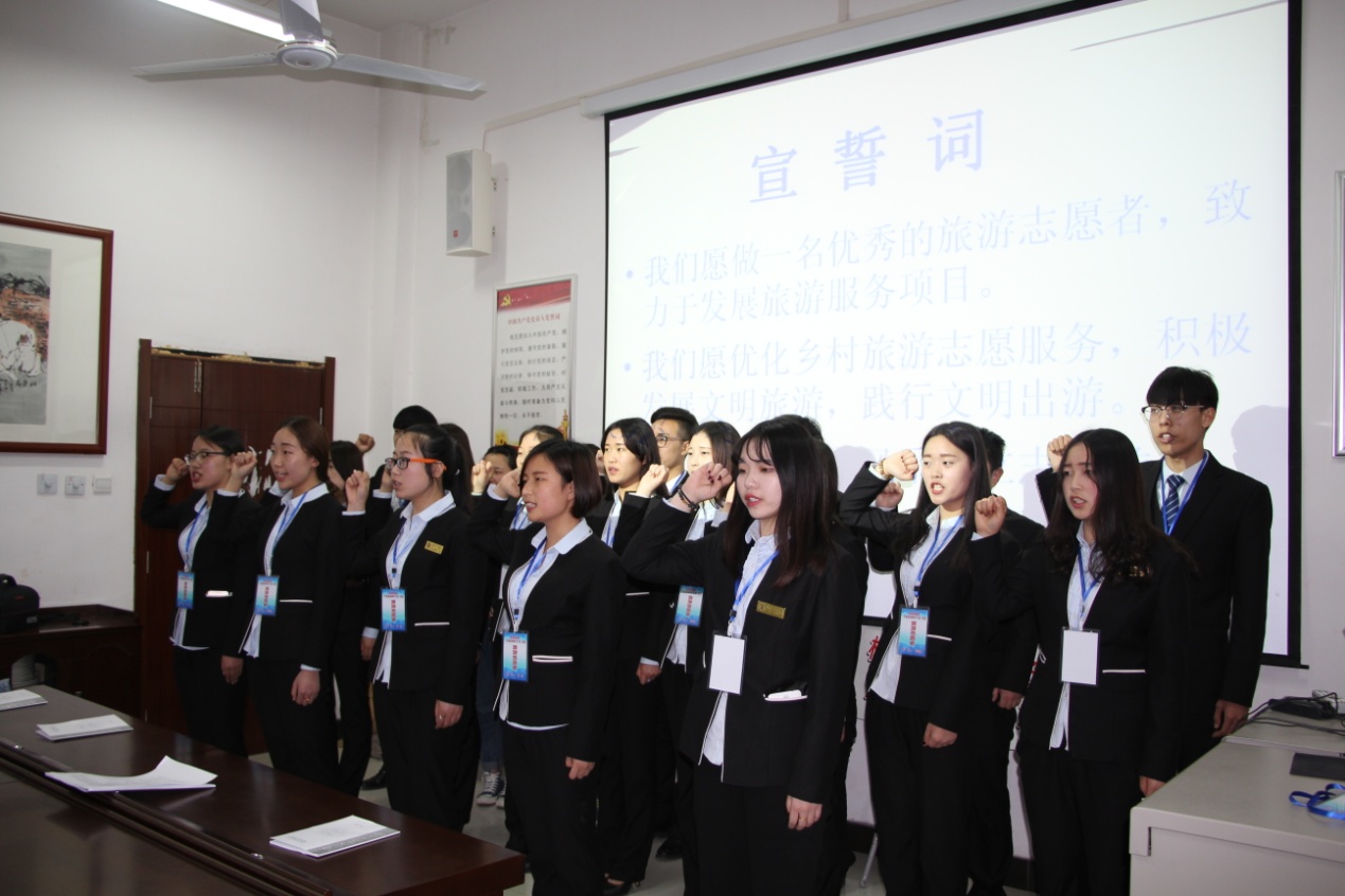 仪式上,学生代表许莹带领同学们进行了宣誓,表示志愿做一名旅游服务者,积极投入到项目的实施过程之中。