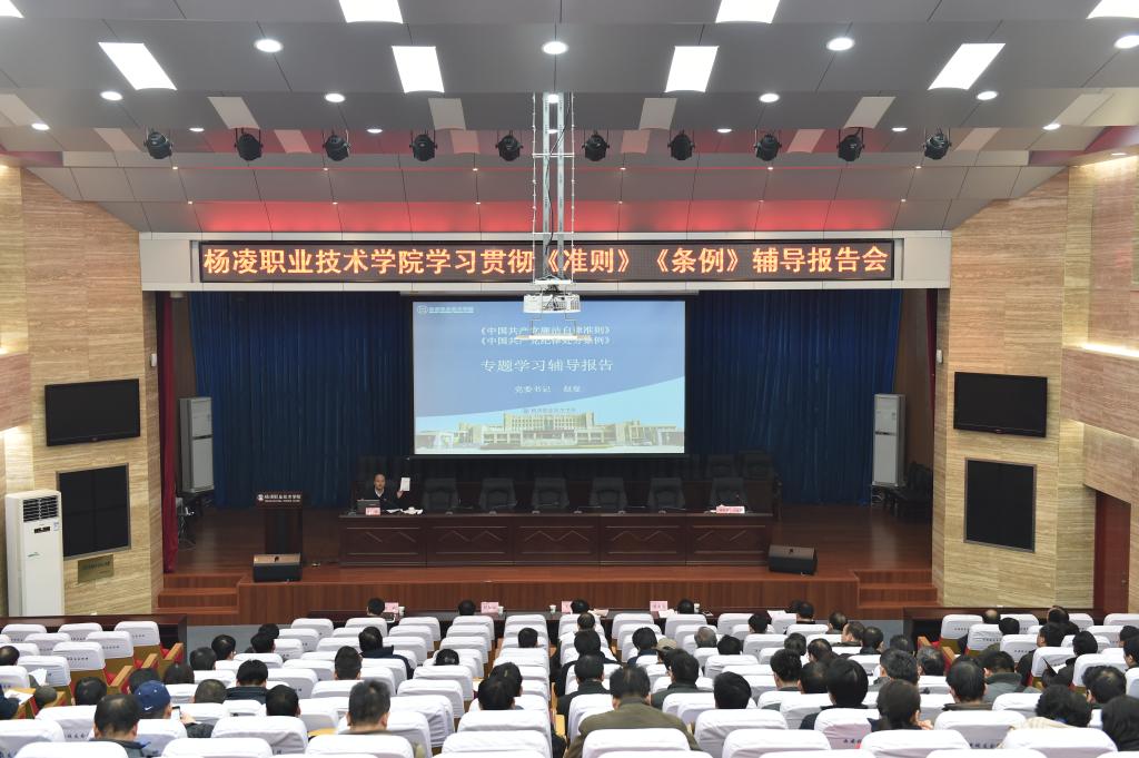 12 30 下午,我院召开《中国共产党廉洁自律准则》和《中国共产党纪律处分条例》专题学习辅导报告会。院党委书记赵曼围绕中共中央新颁的《准则》《条例》进行了解读和学习辅导。纪委书记刘粉莲主持会议,学院科级以上干部、各党支部书记共100余人参加了报告会。