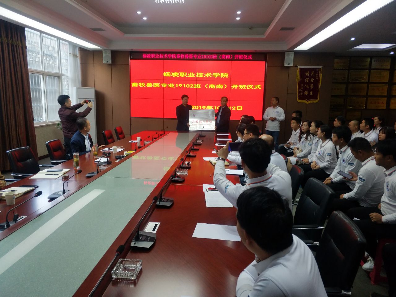 10月12日,我院首届畜牧兽医专业新型职业农民学历提升班开班仪式,在商南县丰联农牧公司会议室举行。动物工程分院负责人、教师代表、丰联农牧公司相关领导以及该公司38名学员参加了开班仪式。