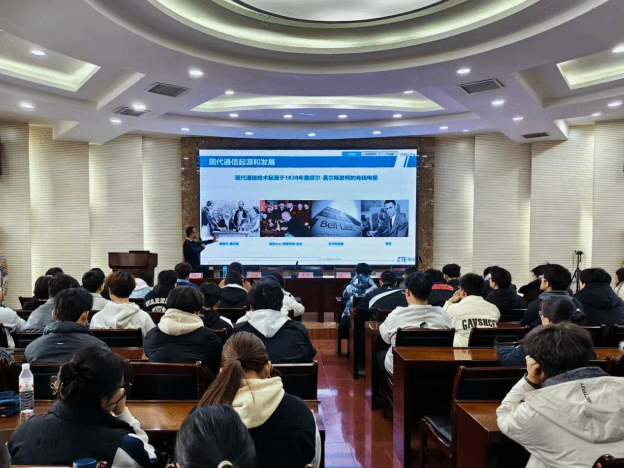 12月1日,信息工程学院联合中兴通讯股份有限公司,举办通信行业认知与职业规划专题讲座。中兴通讯供应链区域招聘总监吴晓庆受邀主讲,信息工程学院相关负责人、通信教研室主任、部分骨干教师,以及现代通信工程本科专业学生参加讲座。
