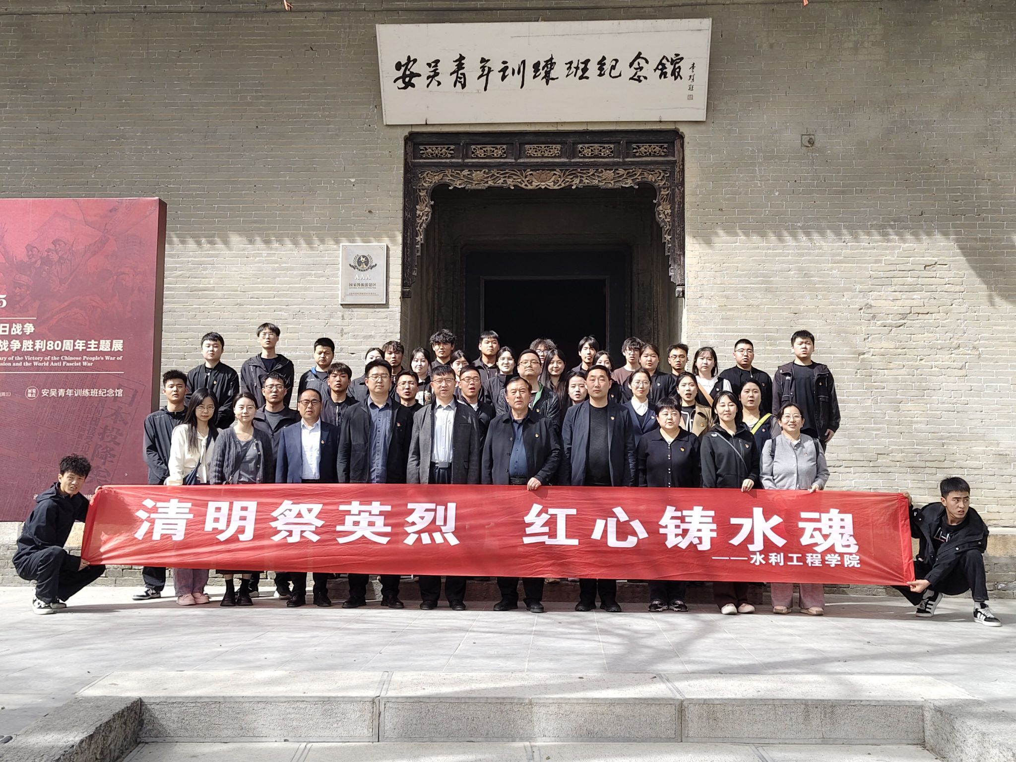 4月3日下午,水利工程学院党总支组织50余名师生党员代表,赴泾阳县安吴青训班纪念馆,开展“清明祭英烈 红心铸水魂”主题党日活动。