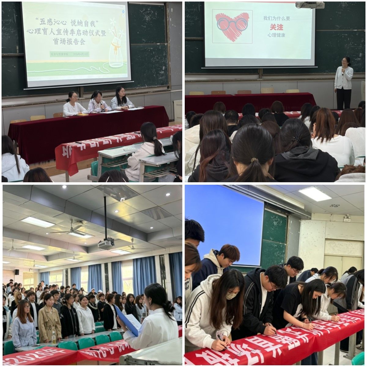 启动仪式上对心理育人宣传季活动进行了安排部署,全体同学进行了《善爱我》心理健康宣誓,铿锵誓言彰显了同学们关爱自我、悦纳自我、呵护心灵的坚定决心。在场师生依次在主题横幅上签名承诺,以实际行动践行健康理念、共筑心理防线。