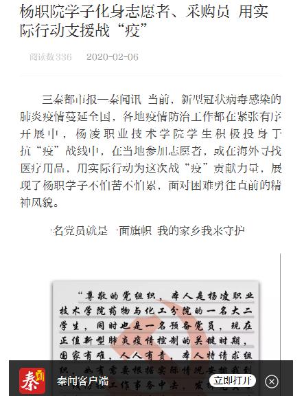 【三秦都市报】杨职院学子化身志愿者、采购员 用实际行动支援战“疫”