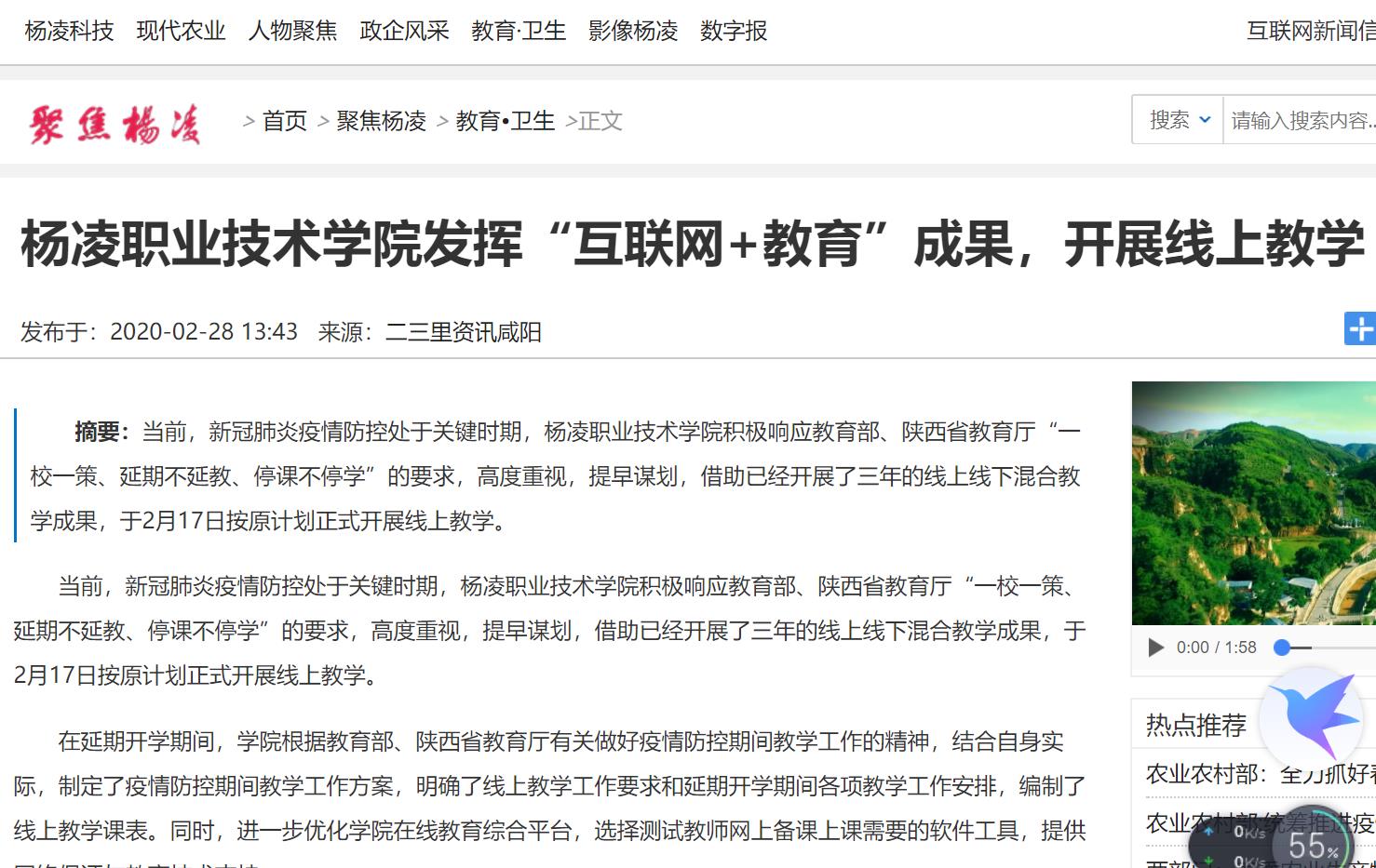当前,新冠肺炎疫情防控处于关键时期,杨凌职院技术学院积极响应教育部、省教育厅“一校一策、延期不延教、停课不停学”的要求,高度重视,提早谋划,借助已经开展了三年的线上线下混合教学成果,于2月17日按原计划正式开展线上教学。