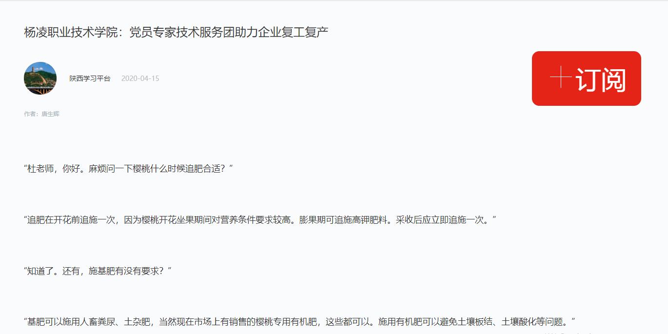 【学习强国】杨凌职业技术学院:党员专家技术服务团助力企业复工复产