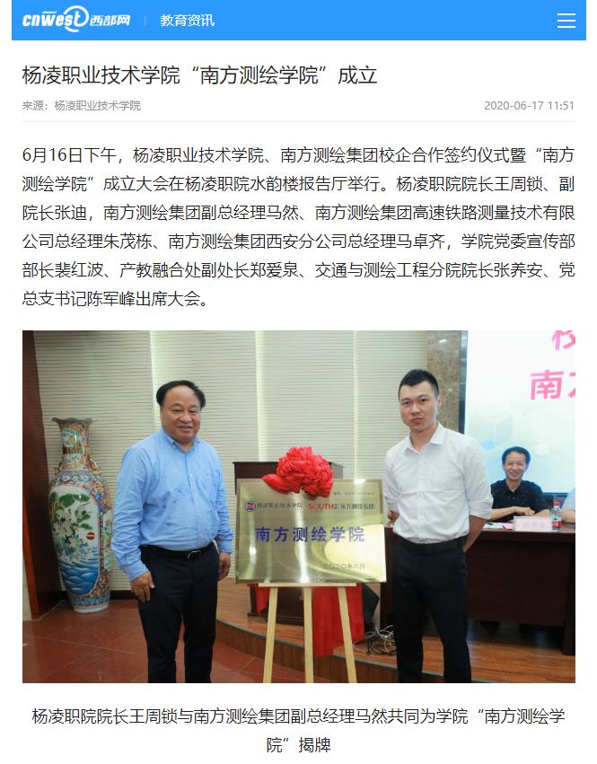【西部网】杨凌职业技术学院“南方测绘学院”成立