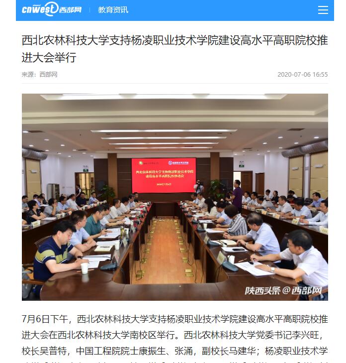 【西部网】西北农林科技大学支持杨凌职业技术学院建设高水平高职院校推进大会举行